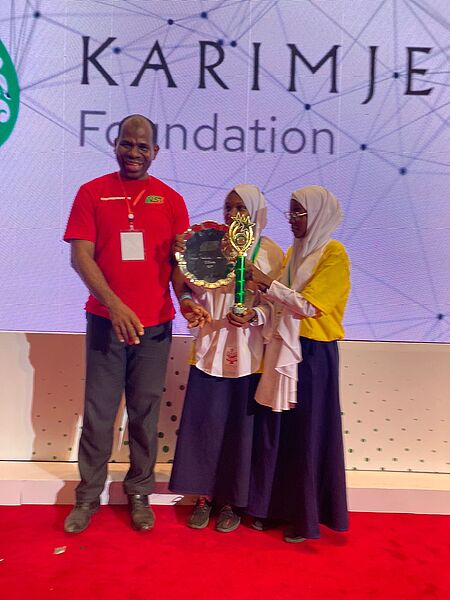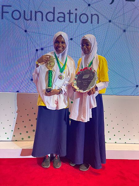 Meet our YST 2024 Overall Winners from Unguja- Zanzibar, Lumumba Secondary School. Ramlat Hamad Abdulla and Salha Shamim Khamis. Their winning project : Analysis of the use of corals for seaweed farming and with their teacher Mr Ame Haji Vuai.